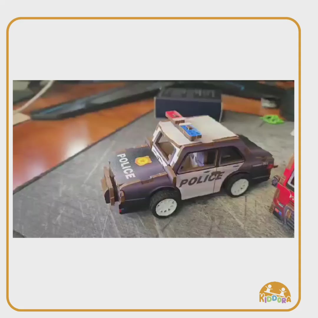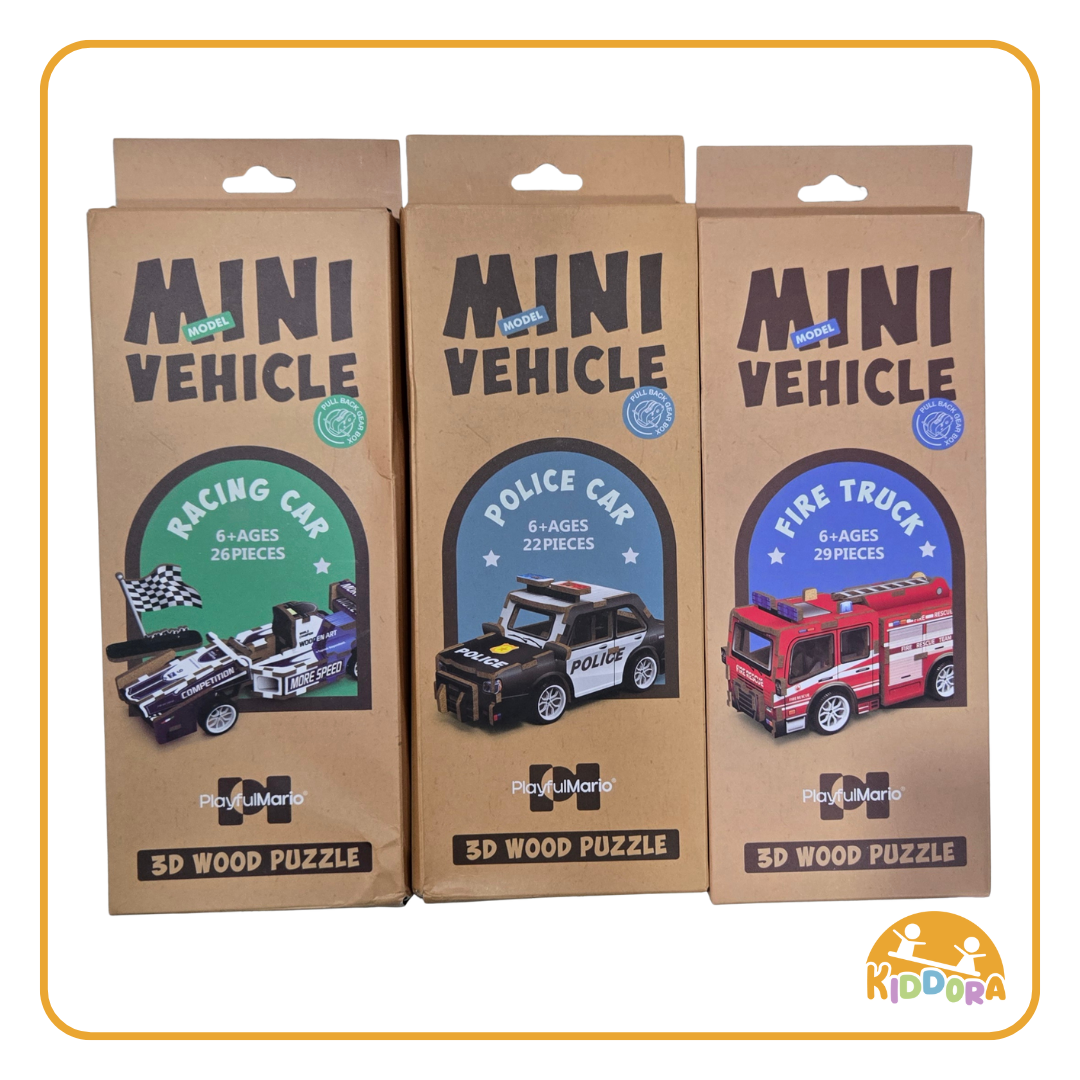 The Kiddora 3D Wood Car Puzzle is a hands-on wooden toy that lets kids build their own working mini vehicle. Choose between a police car, fire truck, or racing car design, each made from smooth, eco-friendly wood for safe, creative play.