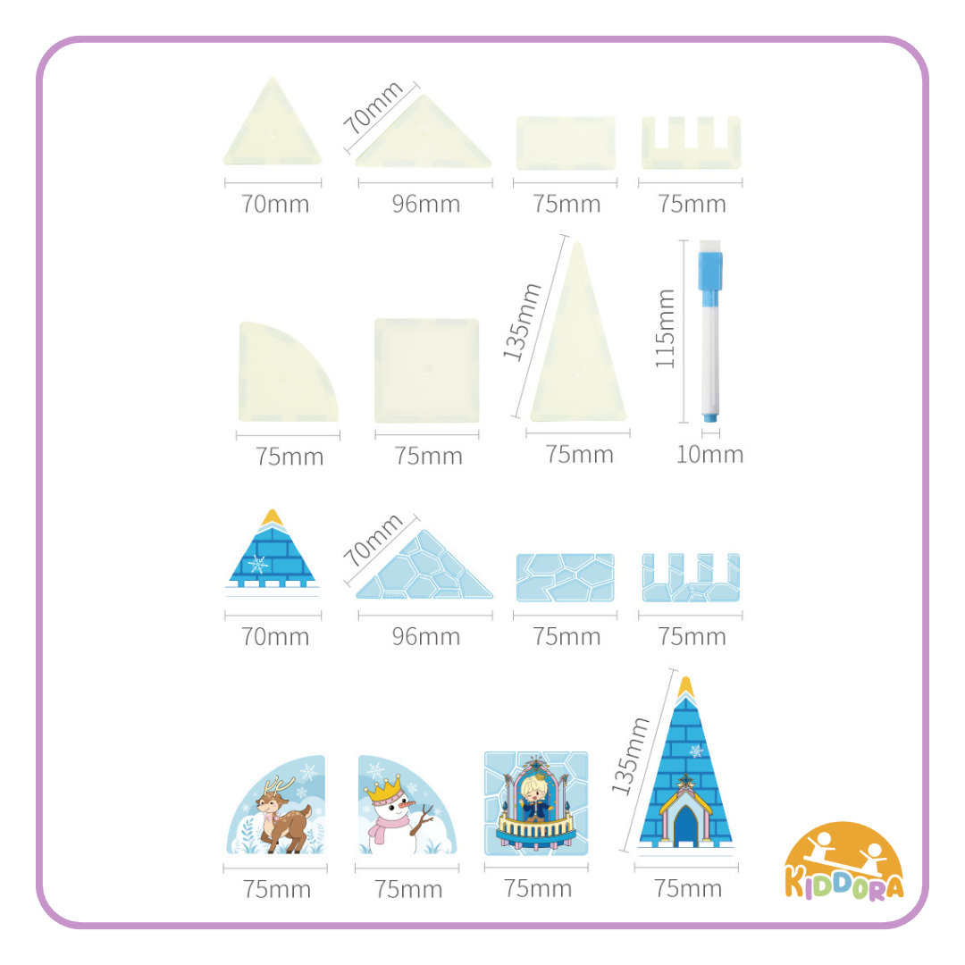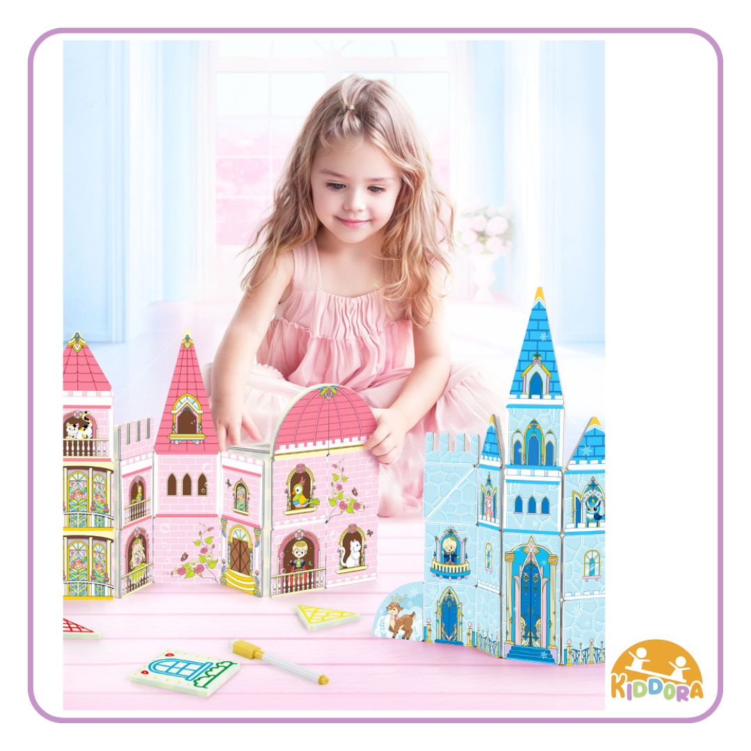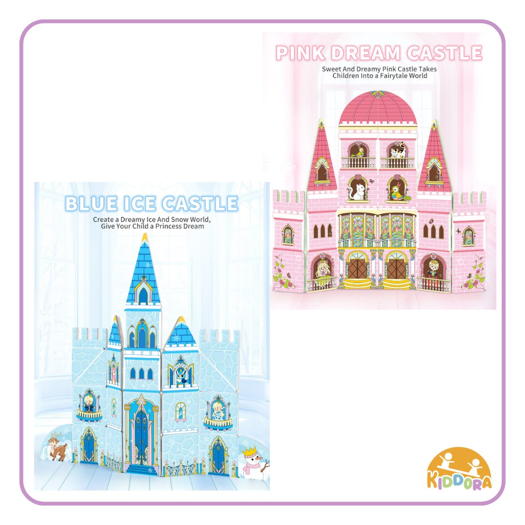 This 2-in-1 design blends imaginative play with learning. Kids can build, decorate, and redesign their creations again and again. Pink Dream Castle and Blue Ice Castle double sided magnetic tiles allow for greater building creativity.